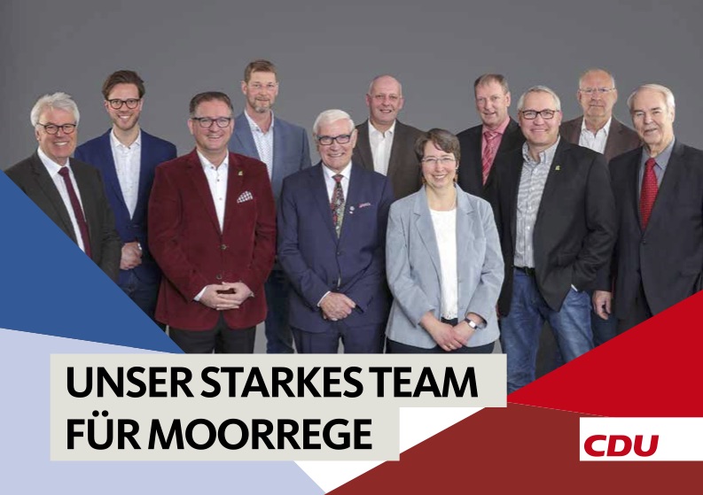 am 6. Mai 2018 stellen sich die Moorreger Gemeindevertreterinnen und Gemeindevertreter zur Wahl. Wir, die Moorreger CDU, konnten in den letzten 5 Jahren viel für Moorrege erreichen. Diese Erfolge wollen wir wie folgt fortsetzen. Unsere Aufgabenstellung für die nächsten 5 Jahre: